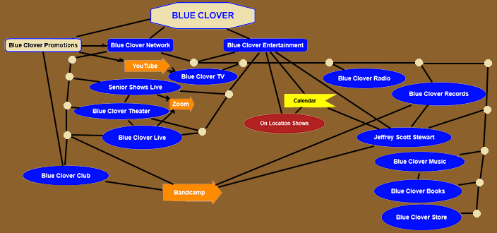 This is the place that you can start from to find everything. It's pretty much an 'index' from where you can 'jump off' to any specific site. And from every page that is actually part of the network (some linked pages are external), you can simply come back to this root, the "Blue Clover Network" home page.